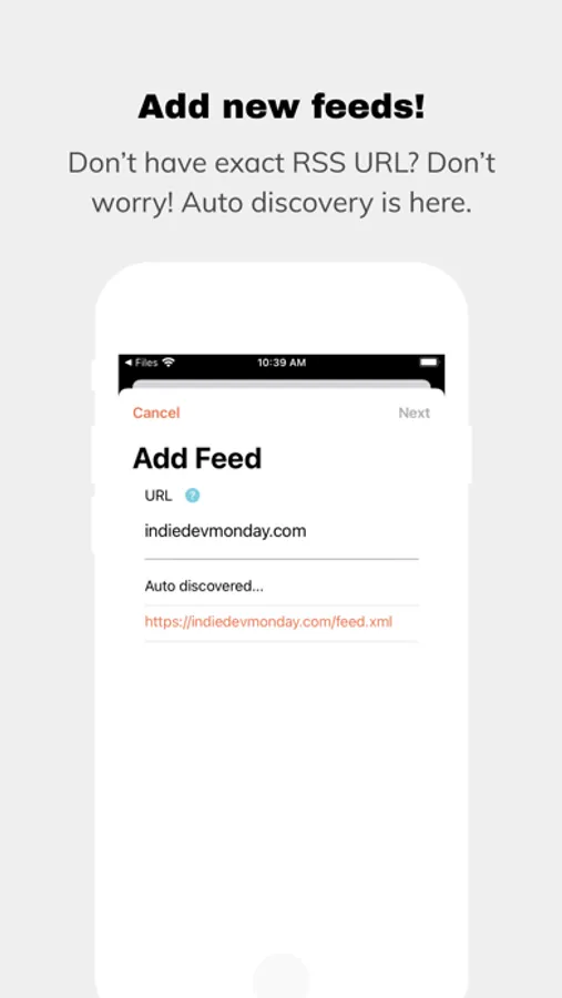 Simply enter the domain of website (like anotterrss.com) and Otter will attempt to discover all RSS feed urls to choose from.