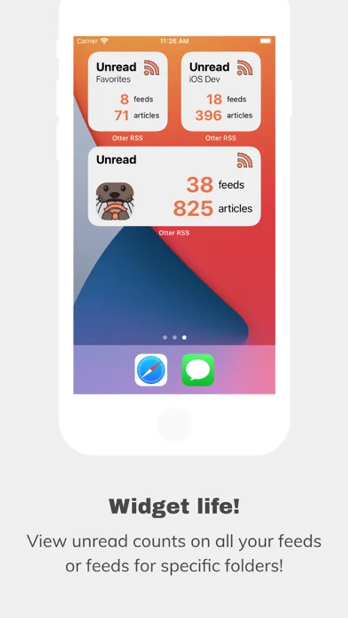 Add some gorgeous widgets to your Home Screen to show unread count for either all feeds or a specific folder of feeds.