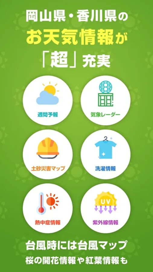 岡山県・香川県のニュースやユーザーの住んでいる市町村単位にセグメントして受信できる天気。