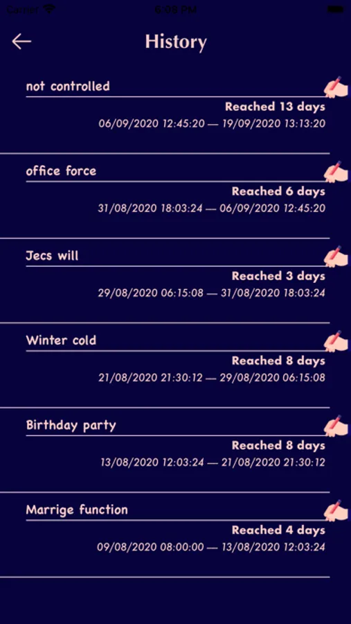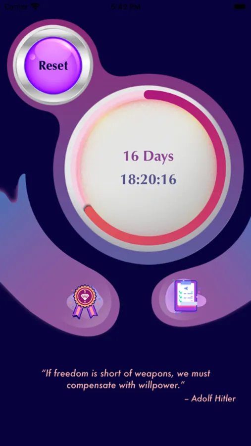 The app consists of simple and not over complicated counter, history where you can see your failed attempts. There is also lots of quotes which will keep you motivated during your journey.