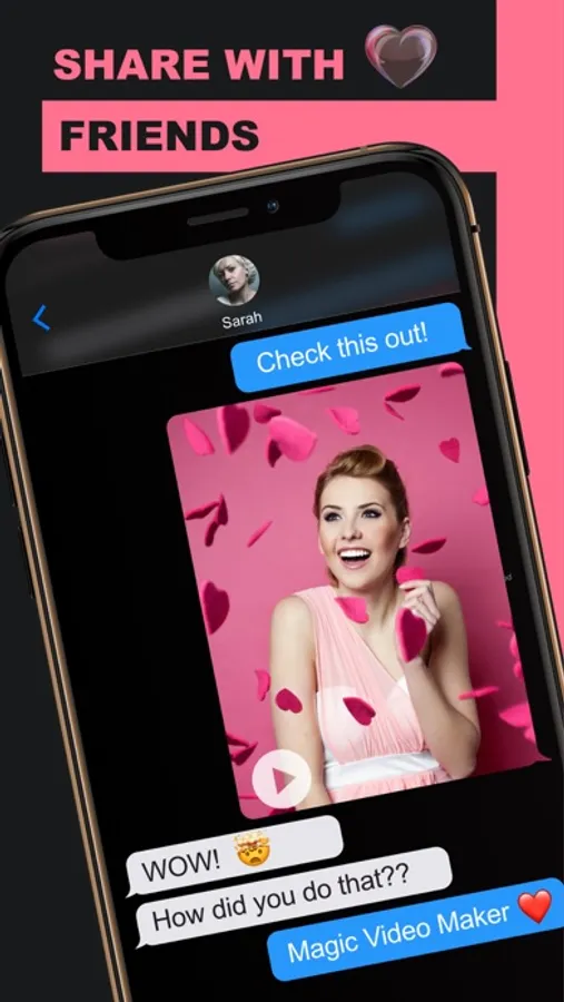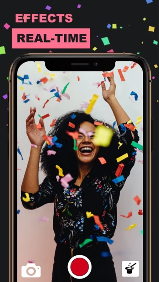 Add animated emojis, face filters and visual effects such as, lovely falling hearts to express yourself with special photos and videos. Action FX such as, Explosions, Lightening are also available.