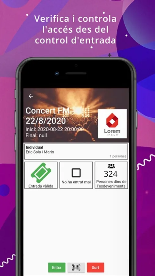 El dia de l'esdeveniment podràs muntar un control d'entrades per a controlar l'accés dels socis o no socis que vulguin accedir-hi.