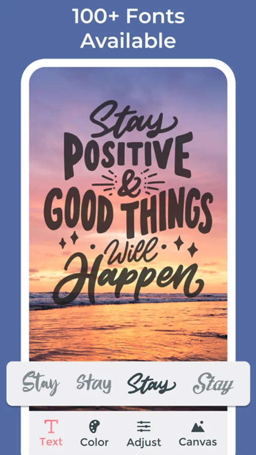 Simply select a photo, enter a catchy caption, and choose between dozens of designer text styles. Every time you select a style, a new, unique design is generated just for you!