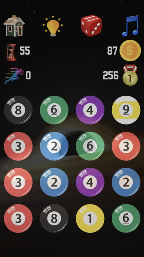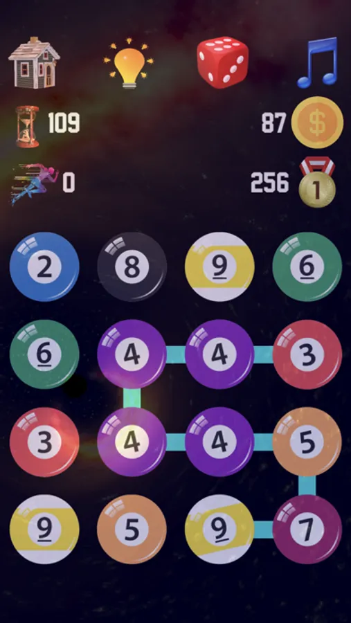 Tenet & Grow is a must-play game for you! The rule of the game is simple. You score by connecting neiboring numbers (represented as pool balls) that make up either a tenet (aka palindrome) or a growth sequence with minimum length of 4.