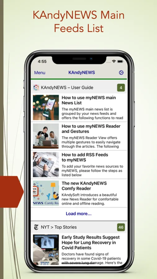KAndyNEWS is a comfortable way to to read your favorite news sources in a clean, content-focused way: