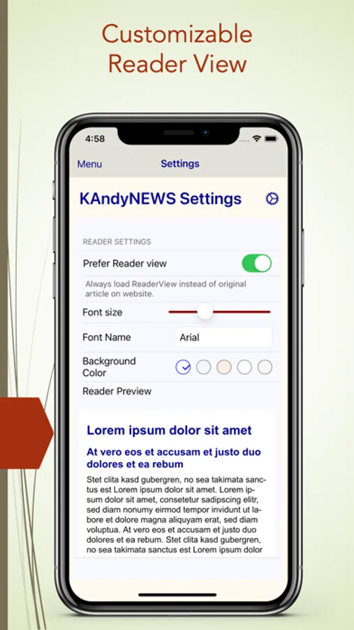 – Configure your Reader view with different fonts and colors