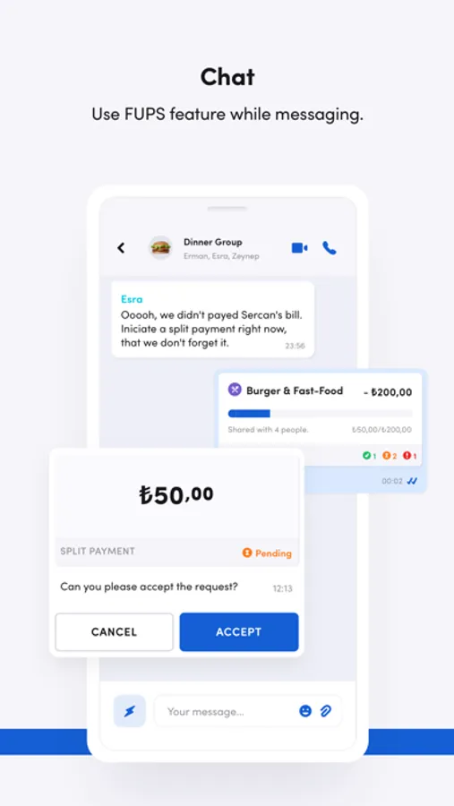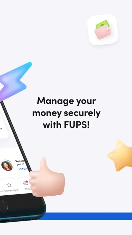 Download FUPS, create your FUPS account in seconds, and manage your money safely in FUPS! Manage your budget, make your payments, send/receive money, split the account in advance, and choose who will spend how much with FUPS.