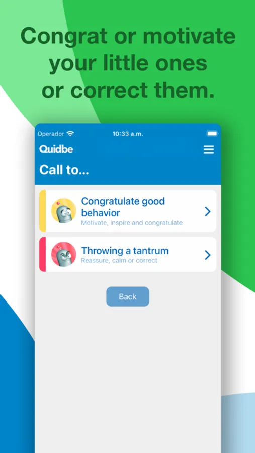 Many tantrums can be over with a simple distraction and Quidbe helps you create it. It can also seize the good moments to congratulate and encourage your little ones to keep going with their good behavior.