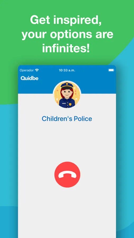 Quidbe reproduces pre-recorded audios to simulate a fake call to the children’s Police Station or the children’s Doctor. With that, you can report your little one’s behavior. Every audio has different dialogues! The reproduced audio’s dialogues will help you mention the motive for which you are simulating the fake call, having endless options.