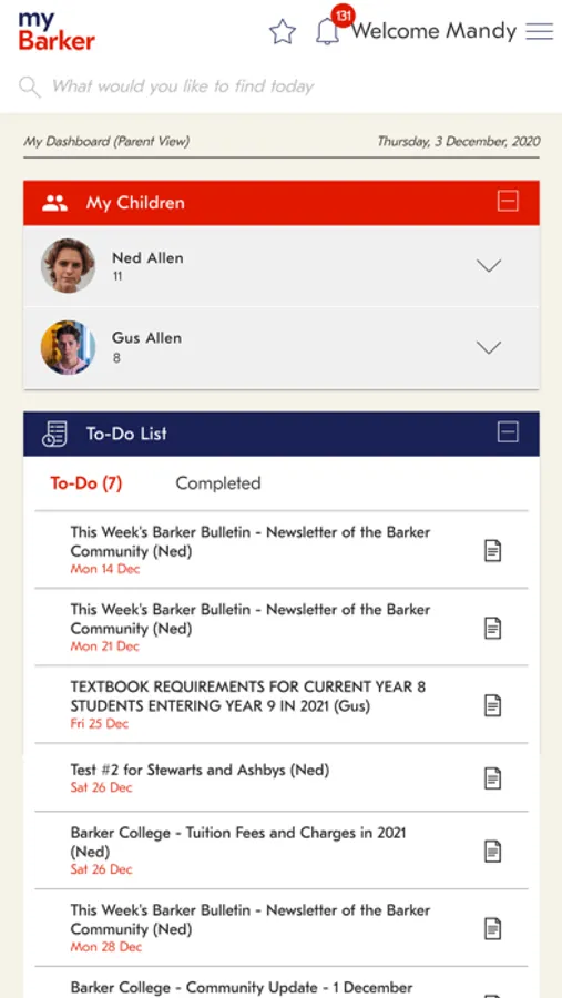 Access key information from Barker College from the palm of your hand with the MyBarker app. Receive instant and important information and news from the School. Key features of the MyBarker app include: