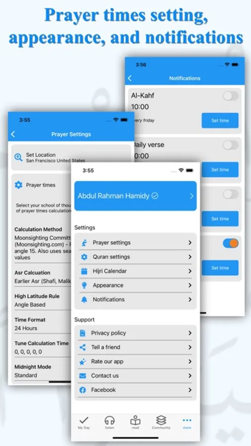 Muslim Pillars is a free Islamic application that provides many features such as prayer times, Quran, Azan (Athan), Qibla, Islamic Hadith, Quranic supplication, Azkar, and many more all for free.