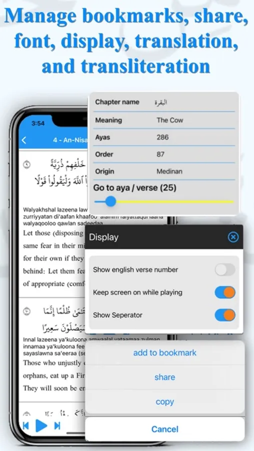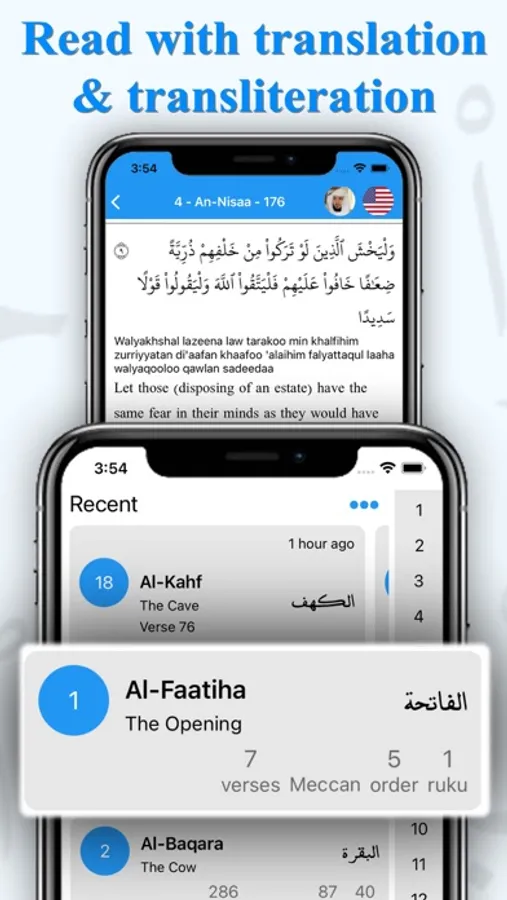 - Verse-by-verse highlight and gap-less Quran recitation & translation.