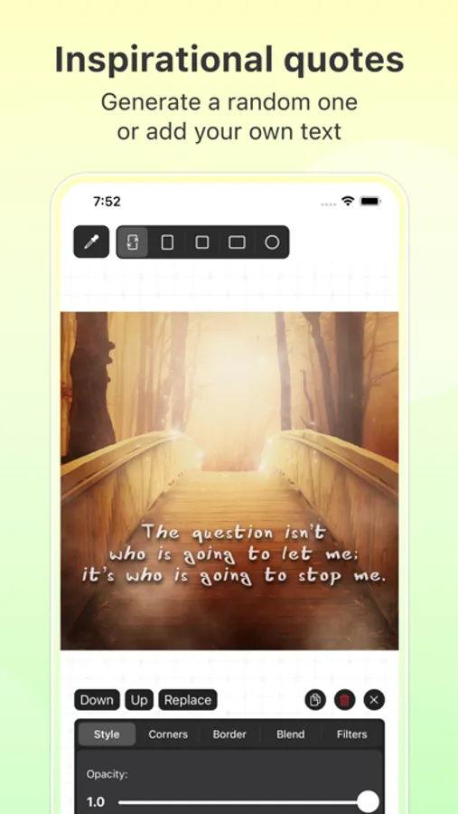 AI-Generated Art: Generate unique images using AI by providing a short description. Import the AI-generated image into the app and apply the full range of editing tools to customize it further.