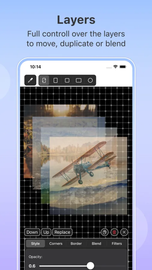Layers: Manage layers with simple gestures, moving, zooming, and rotating to your heart's content. Play with blending options, duplicate layers, and define styles for multiple layers simultaneously.