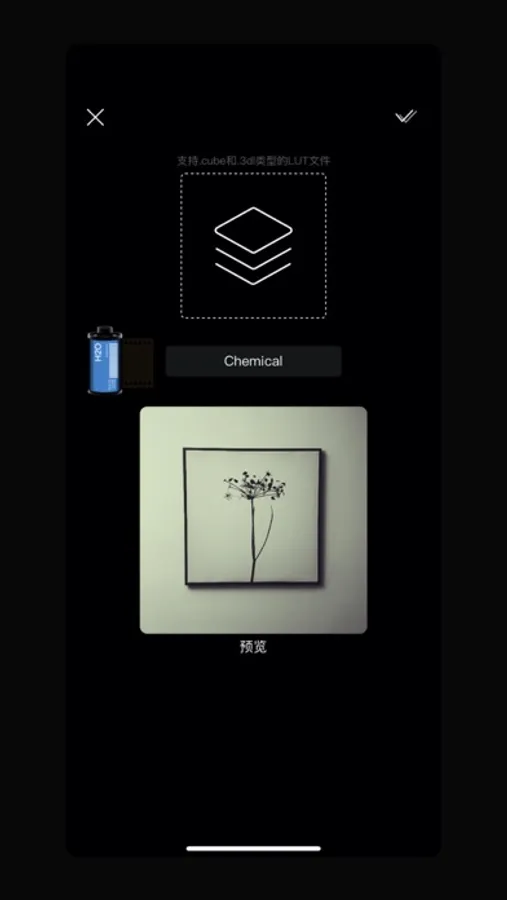 ・当然以上不合胃口的话,Grayscale提供了用户自定义胶卷的能力,让你自由导入自己调色的LUT文件,目前支持.CUBE和3DL格式。还可以增加噪点胶片颗粒感。