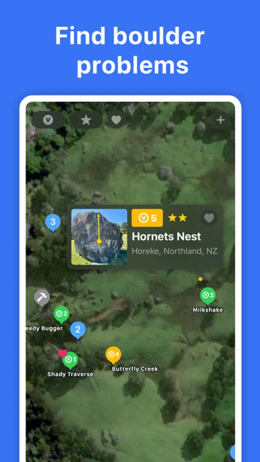 Everything on the map is contributed by users. Anyone can add a new boulder problem or area to the map.