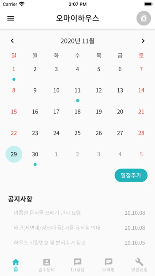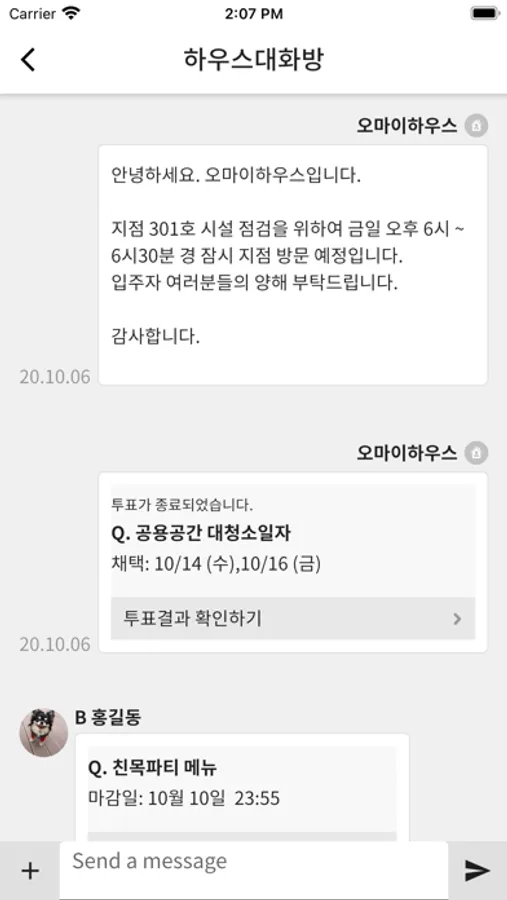 ▶ 입주자 개별 대화방 기능