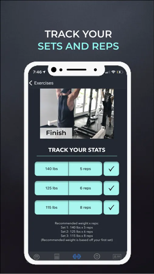 This app features a set/rep tracker to keep track of your progress over time. It calculates calories and macronutrients with the ability to update your weight, goals, and personal information.