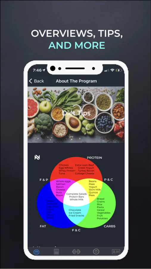 Download the app, enter your information, and pick a goal to get started on your journey to reaching your body composition goals. After 8 weeks, you will be able to shred fat, or gain muscle according to your fitness goals.