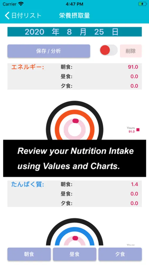 After that, you could start to record what you eat and drink along with some Information on Nutrition facts. These data are supposed to be saved on Breakfast page, Lunch page and Dinner page separately though; You could make sure daily Nutrient intake as well.