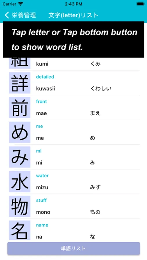 Enjoy drawing Japanese letters and hopefully get used to read / write some Japanese words using the app!
