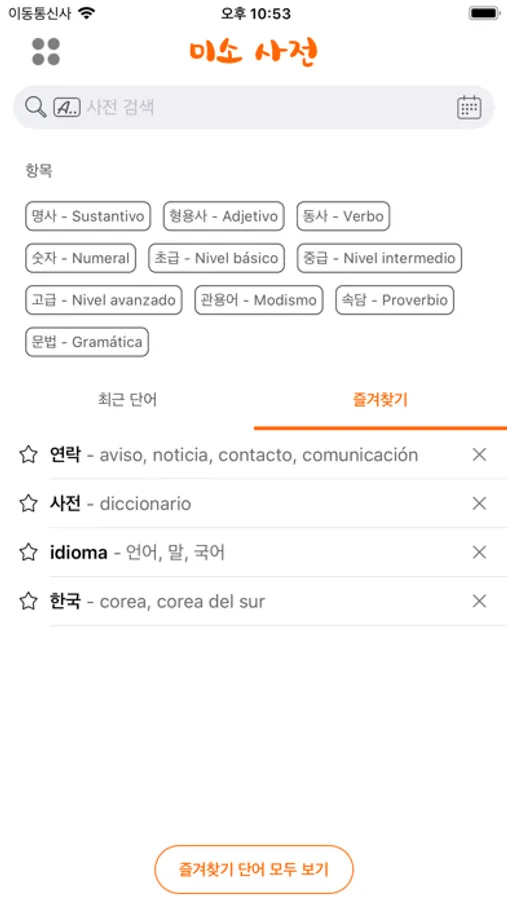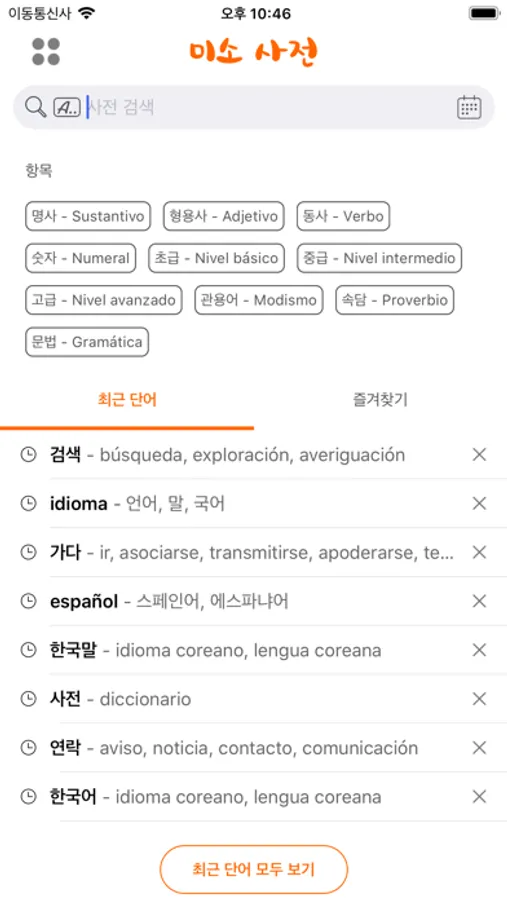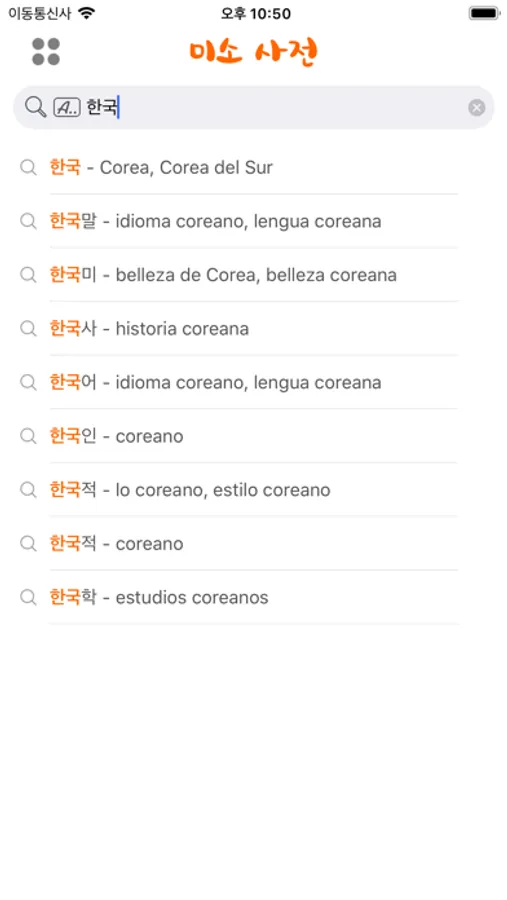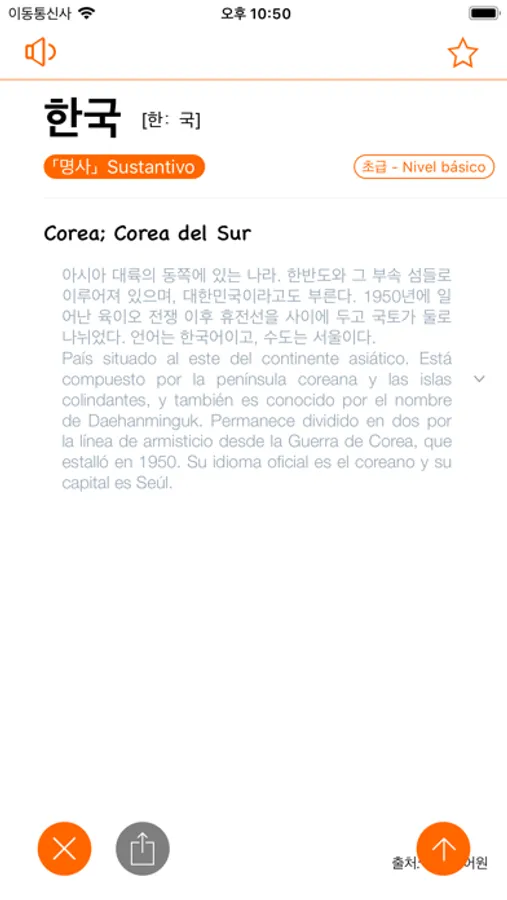 Korean-Spanish-Korean dictionary app containing around 50 thousand words of beginner, intermediate, advanced levels.