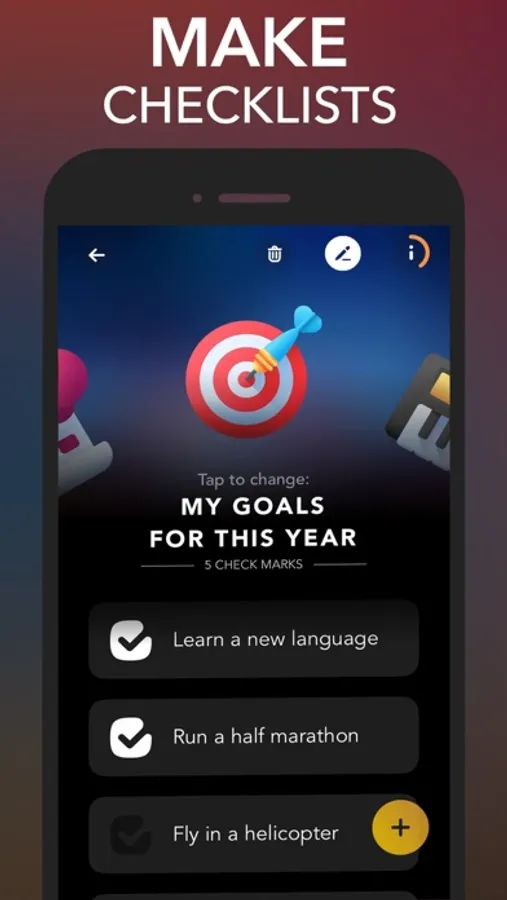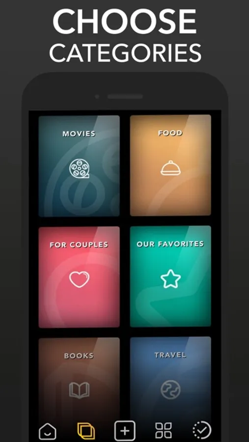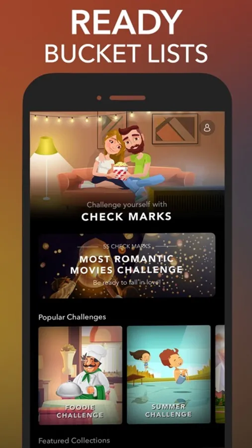 Check Marks is the app consisting of ready-made challenges, bucket lists and checklists that are always at your fingertips. You don’t have to puzzle over thinking about what movie to watch, what to do on the weekend, or what new dish to try and cook.