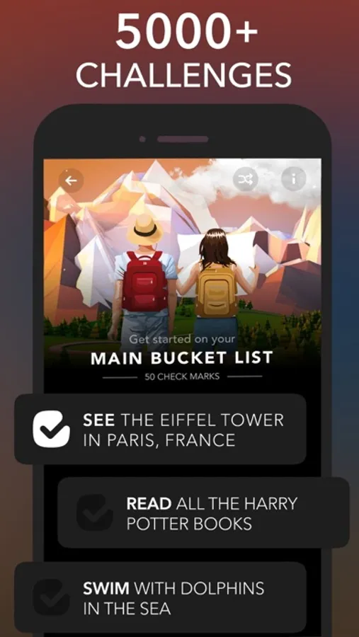 We have done a great job and collected a lot of ready-made interesting challenges and bucketlists in one app.