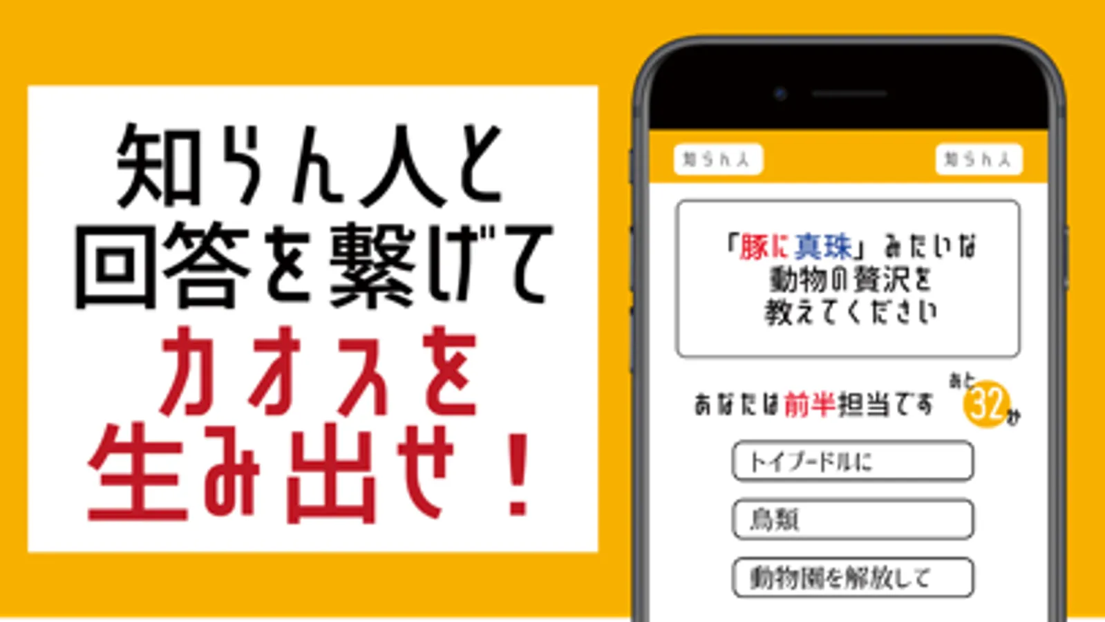 お笑い芸人ではない人が大喜利に答えると往々としてちょっと切ない感じになるものですが、この知らん人と一緒に答えるという仕組みを使うと、カオスが強まり、実力よりも面白い感じになります!