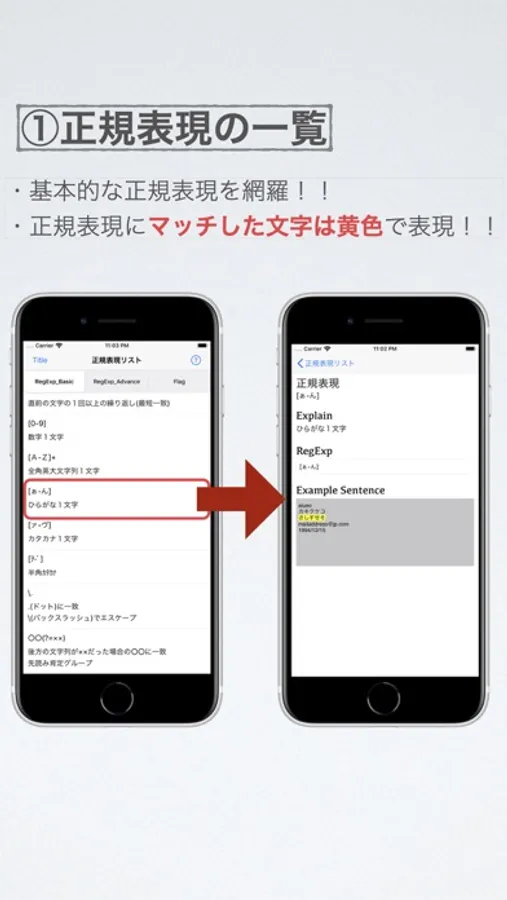 ①基本的な正規表現の一覧機能