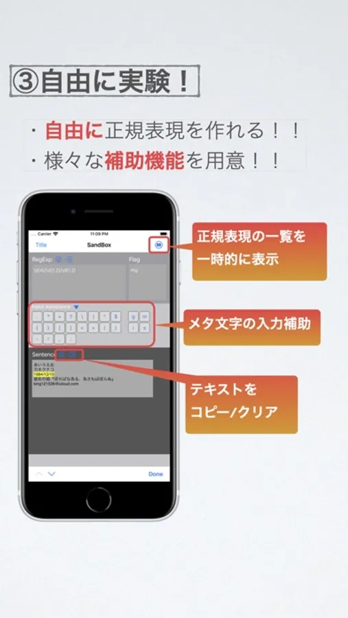 ③自由に正規表現を確認する機能