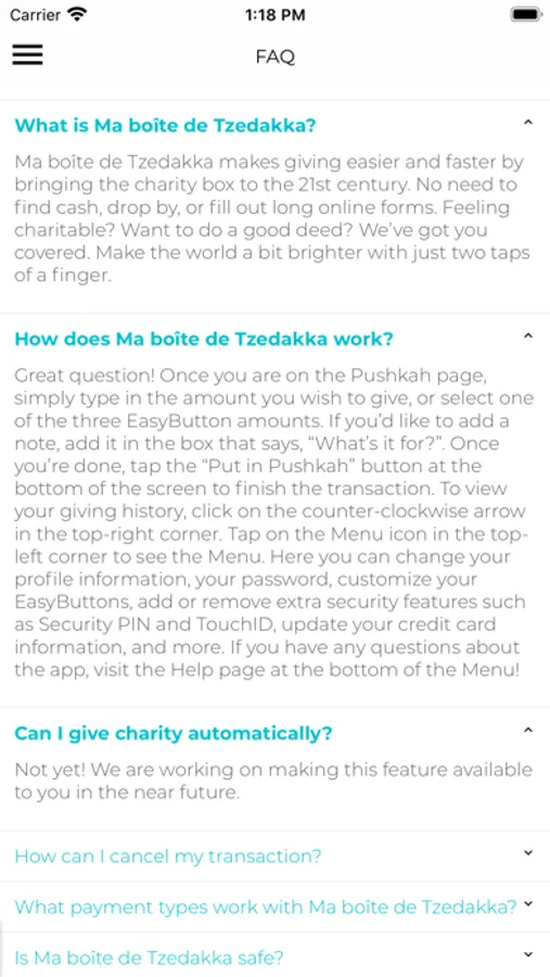 Ma Boîte de Tzedakka makes giving easier and faster by bringing the charity box to the 21st century. No need to find cash, bring your charity box to Chabad, or fill out long online forms. Feeling charitable? Want to do a mitzva? We’ve got you covered. Make the world a bit brighter with just two taps of a finger. Simply select the amount you wish to give, add an optional note, and you’re done!