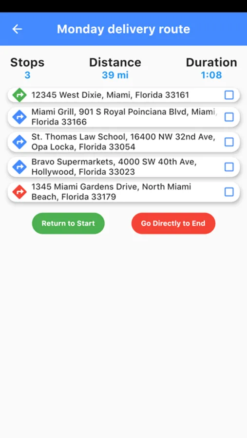Get overall time and distance required for your route before you begin. This will help you plan your trip better to make your day more efficient.