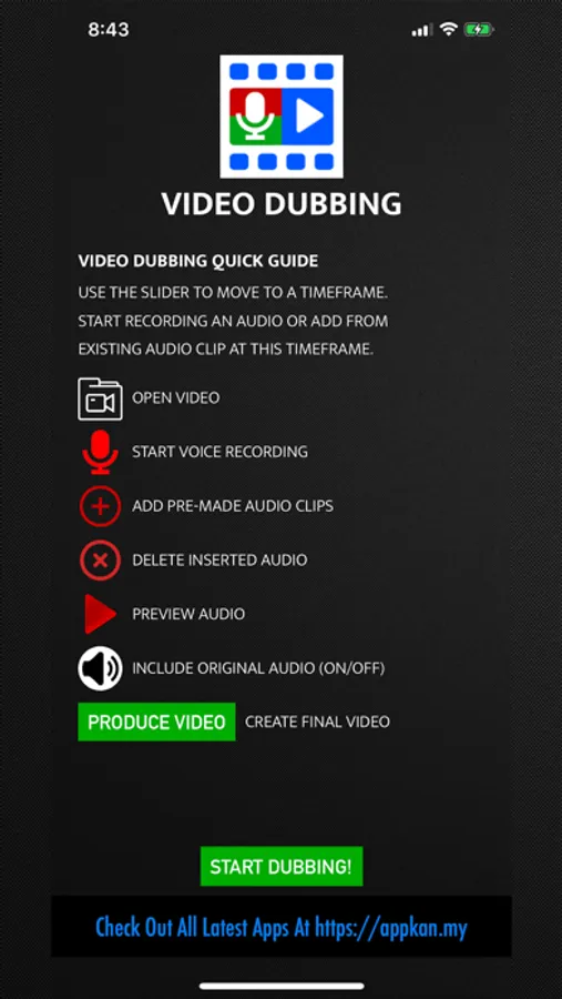 Video Dubbing app allows you to easily add voice-over or sound effect & additional audio in your videos. It can also remove the original audio while adding the new ones.