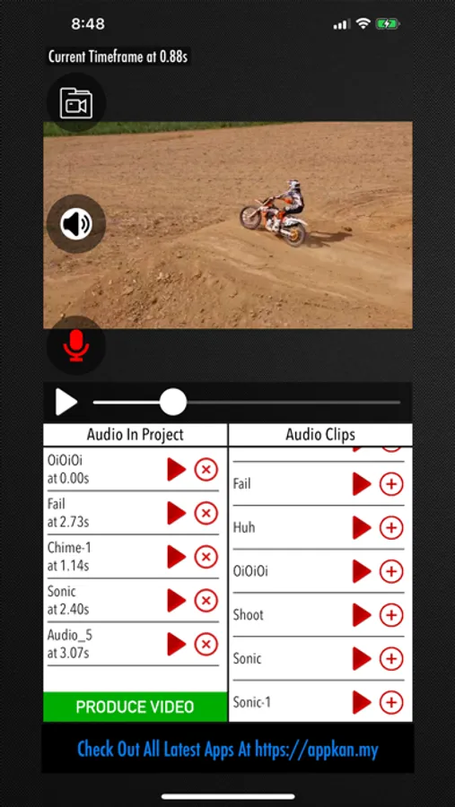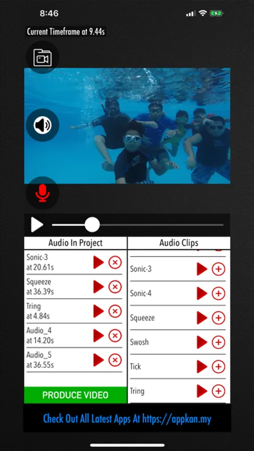 Video Dubbing app also includes some already made sound samples for you to add to your videos. You have a choice to include or not to include the original audio from your video. This is really useful if you are doing a translation where you want to remove the original audio or voice from the video.