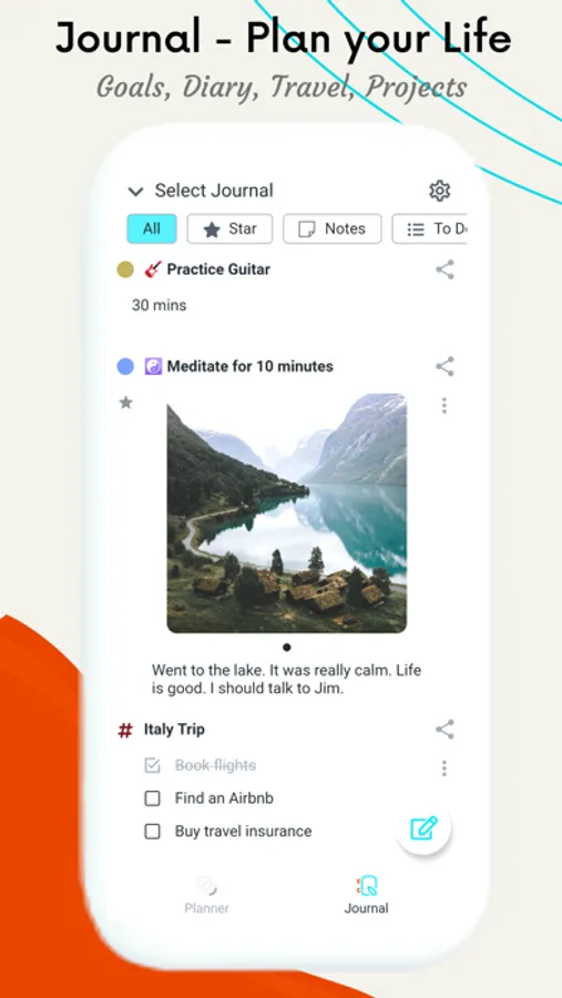 * Journal: Create an independent private diary log for productivity, self-care and meeting life goals