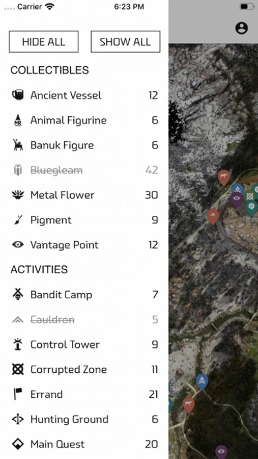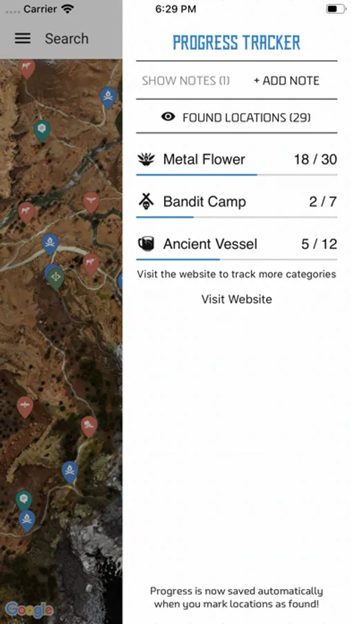 • Progress Tracker - mark locations as found and track the progress of your collectables.