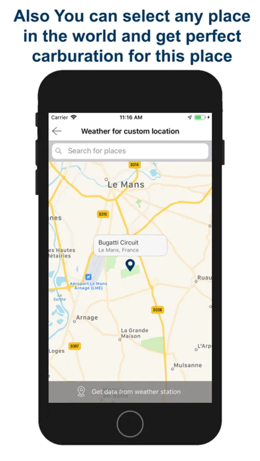• If you don't want to share your location, you can manually select any place in the world, the carburetor config will be adapted for this place