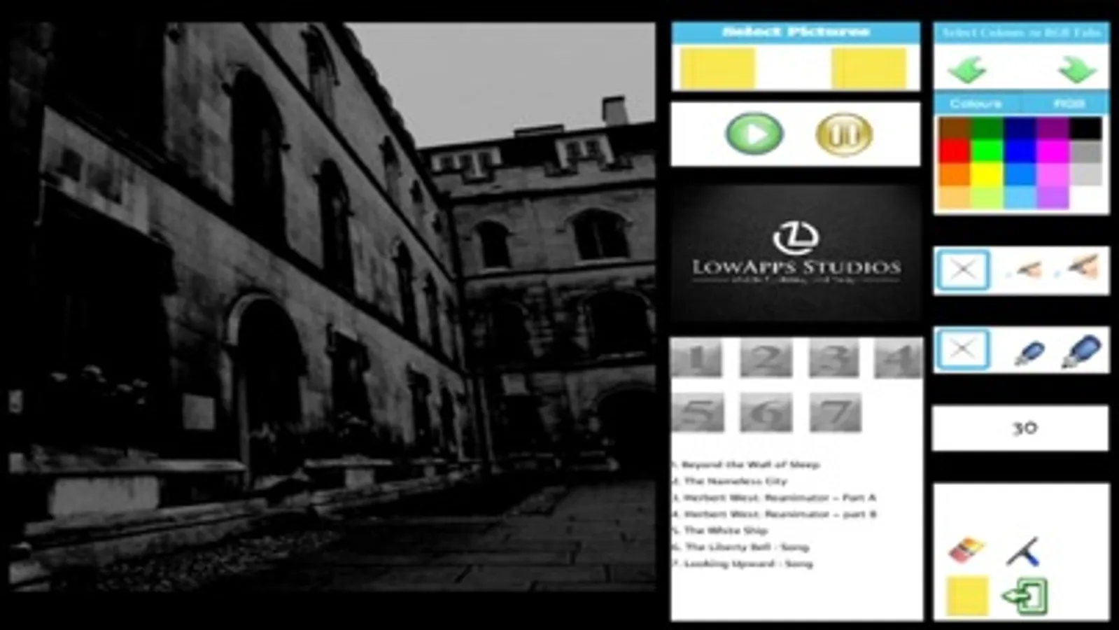 Listen to HP Lovecraft Audio Shorts as you color airbrush style on haunting canvases.