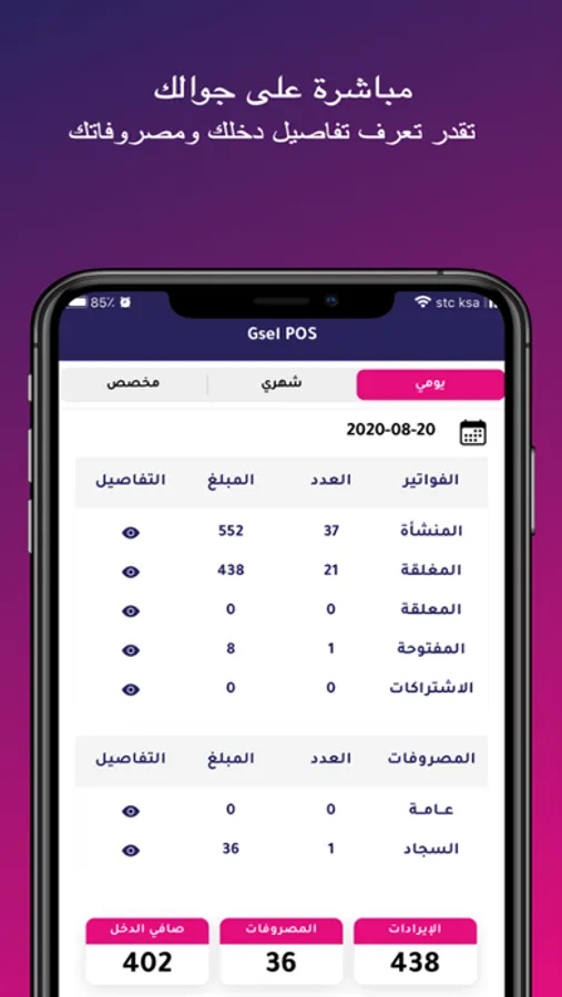 تطبيق Gsel POS هو الاصدار الخاص بصاحب المغسله لكي يتابع عمل المغسله من خلال جواله بحيث يتم استقبال البيانات من برنامج Gsel POS الموجود بالمغسله بنفس لحظه استلام او تسليم الملابس للمغسله مع مميزات كثيرة