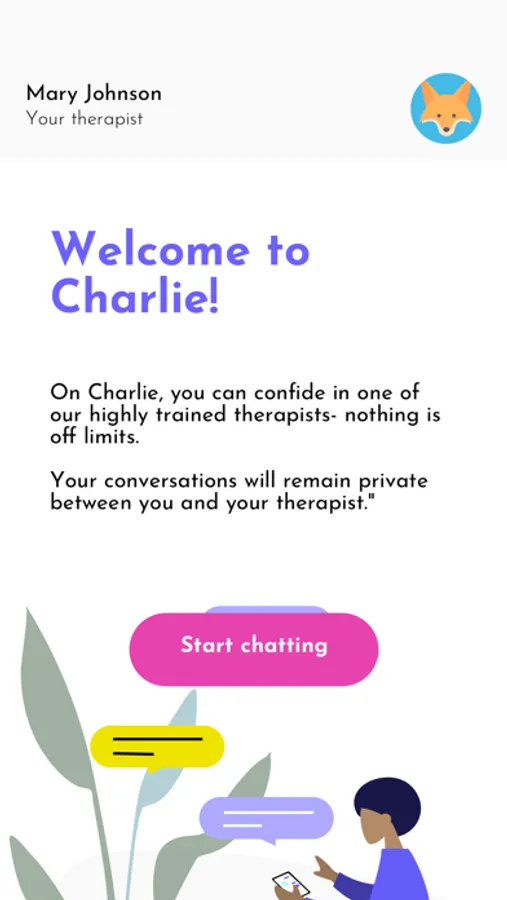 The Charlie iOS app allows teens who have a plan with us to chat with their therapist on the go.