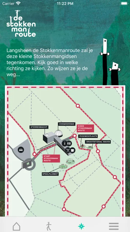 De Stokkenmanroute is een belevenisvolle wandeling van 4,2 km doorheen de bossen van Kattevennen, een van de toegangspoorten tot het Nationaal Park Hoge Kempen in Genk. De start van de Stokkenmanroute is aan het bezoekersonthaal Kattevennen in de Planetariumweg. Met de hulp van deze app ontmoet je de mysterieuze en reuzegrote Stokkenmannen in het bos en ontdek je hun verhaal.