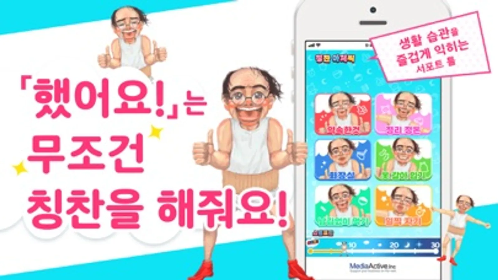 「칭찬 아저씨」는 아이에게 생활 습관을 즐겁게 습득 할 수 있도록 해주는 서포트 툴입니다.