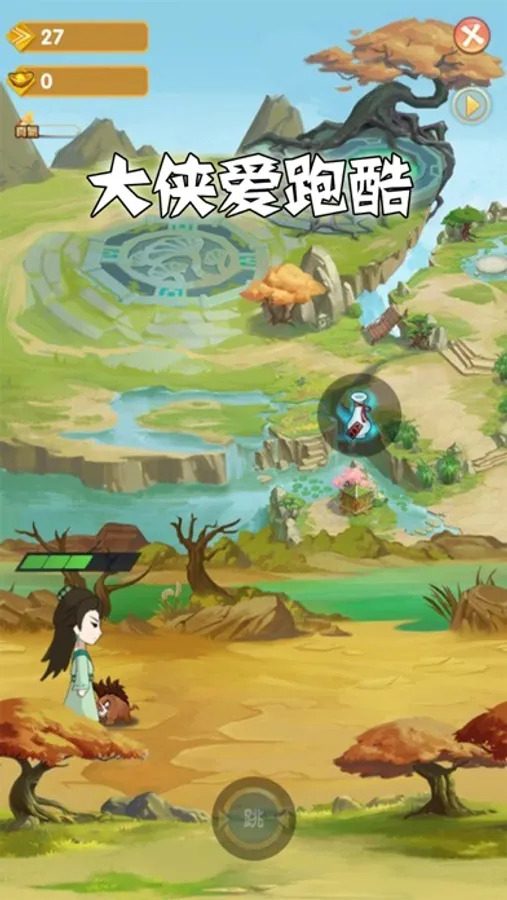 -任何人都可以成为江湖豪侠:每个大侠拥有惊人且独特的轻功,并可以在跑酷时运用这些功法!玩家还可以尝试使用路上的小道具!