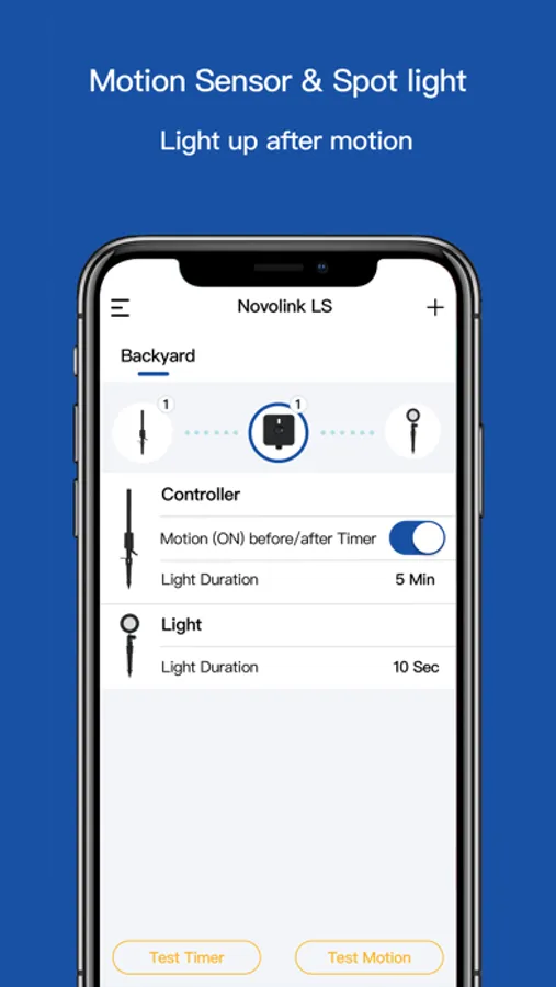 You can connect multiple Controllers, Motion Sensor, Spotlights, and other Novolink LightscapeTM products, manage their wireless settings such as light duration, and connect with Novolink® for guidance, information, and to purchase additional lights and accessories.