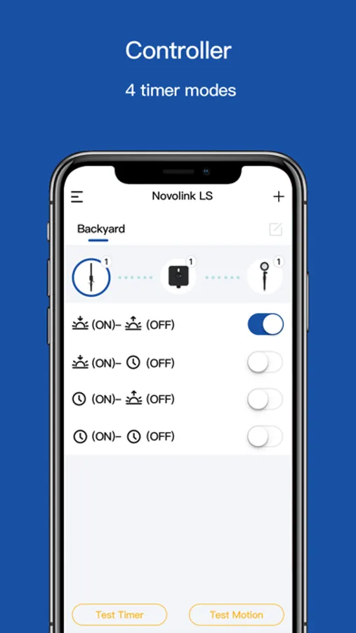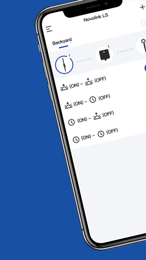 The Novolink LS app also allows you to create multiple ‘Zones’ of control, allowing for different lighting rules and schedules for various areas around your home or yard (ie. Front yard, patio, pool area.)