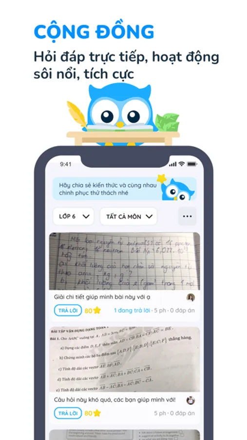 Để học tốt và hoàn thiện kỹ năng tự học, giải bài tập, ôn thi, kiểm tra của học sinh thì ứng dụng đã xây dựng một cộng đồng hỏi đáp bài tập cùng bạn bè học hỏi và trao đổi hướng dẫn giúp đỡ nhau giải bài tập của tất cả các môn Toán, Hoá học, Vật lý, Anh văn, Ngữ văn, Sinh học, Lịch sử, Địa lý , Công nghệ, GDCD, Tin học, từ lớp 6 đến lớp 12.