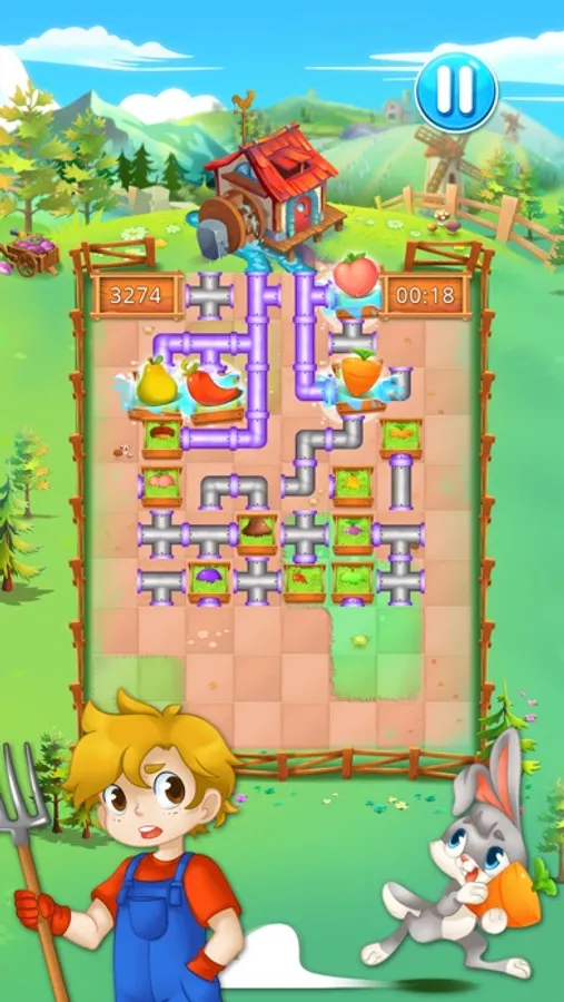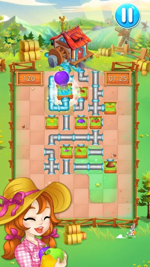 Your vegetable garden really need water. Connect the pipes and water the garden before it's too late. This game is super fun to play, you just need to connect the pipes to make let the water arrives in every fields of your vegetable garden. If you want the best harvest you need to water really urgently. you can play with 3 different game modes: classic, time attack, survive... 3 times funnier to play ! Come on, your farm and plants need you. Give them some water now !