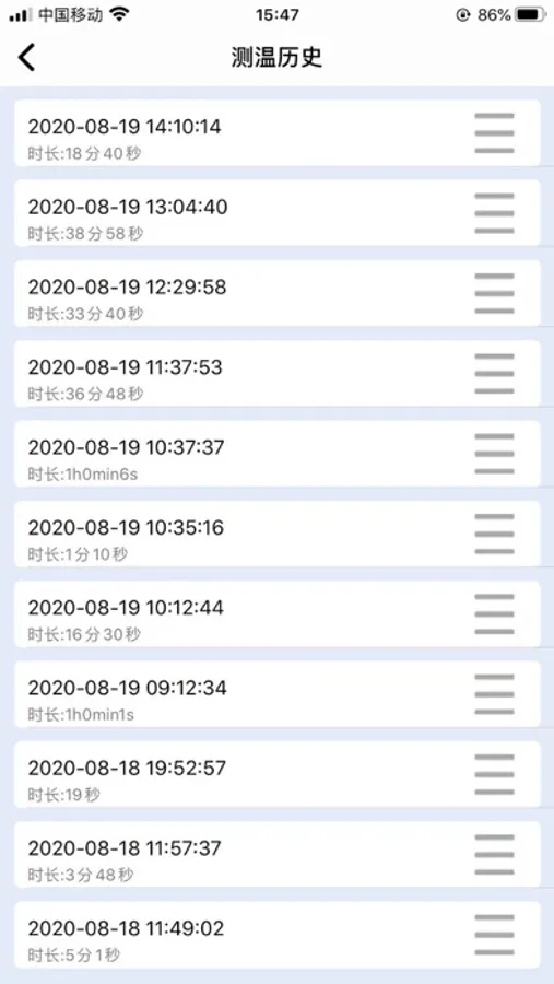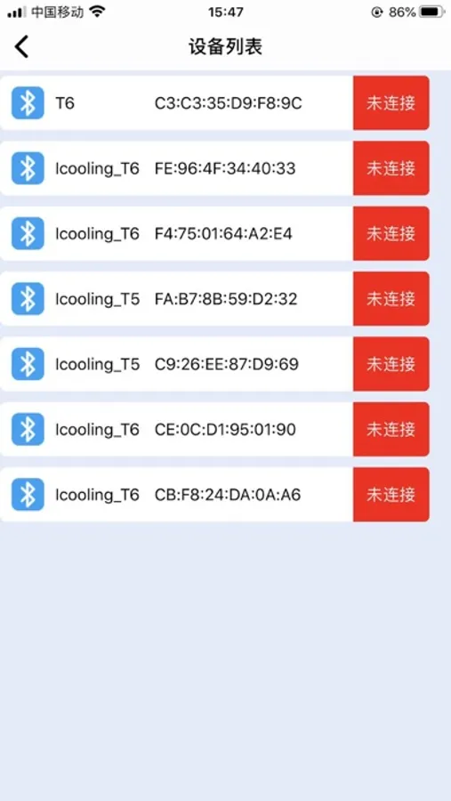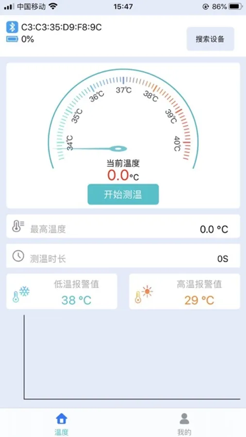 在APP中,可以同时连接多个设备,获取到温度后,显示在手机上,同时将温度数据展示在曲线表格中,并保存在云端.