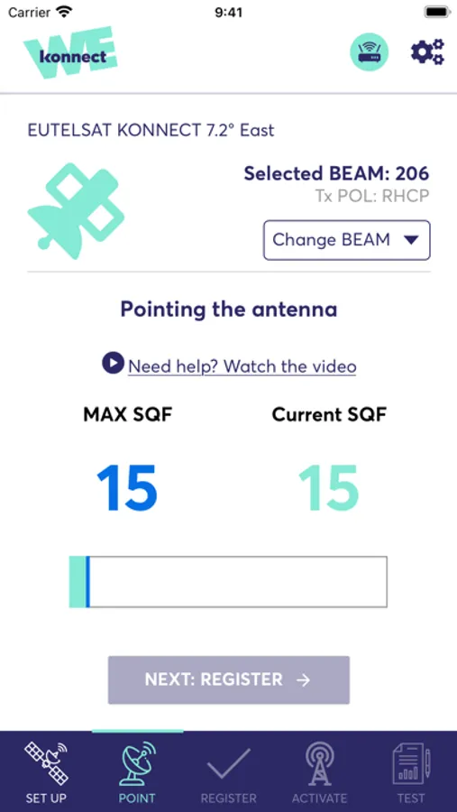 With konnect install App for KONNECT satellite at 7.2 East, you will: